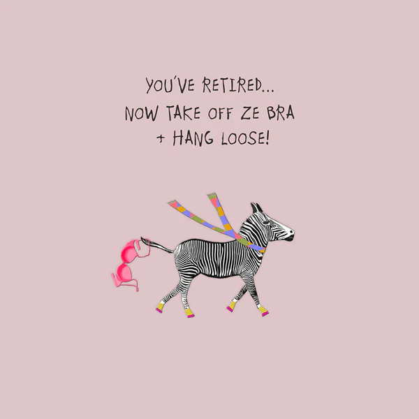 Front reads : You've Retired... Now Take Off Ze Bra & Hang Loose!