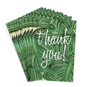 Say thanks in style with this set of 10 thank you cards from Caroline Gardner. With a beautiful leaf design and handwritten style 'thank you' on the front, they're a great way to show your appreciation! These cards come with plain envelopes and are blank inside for your own message.