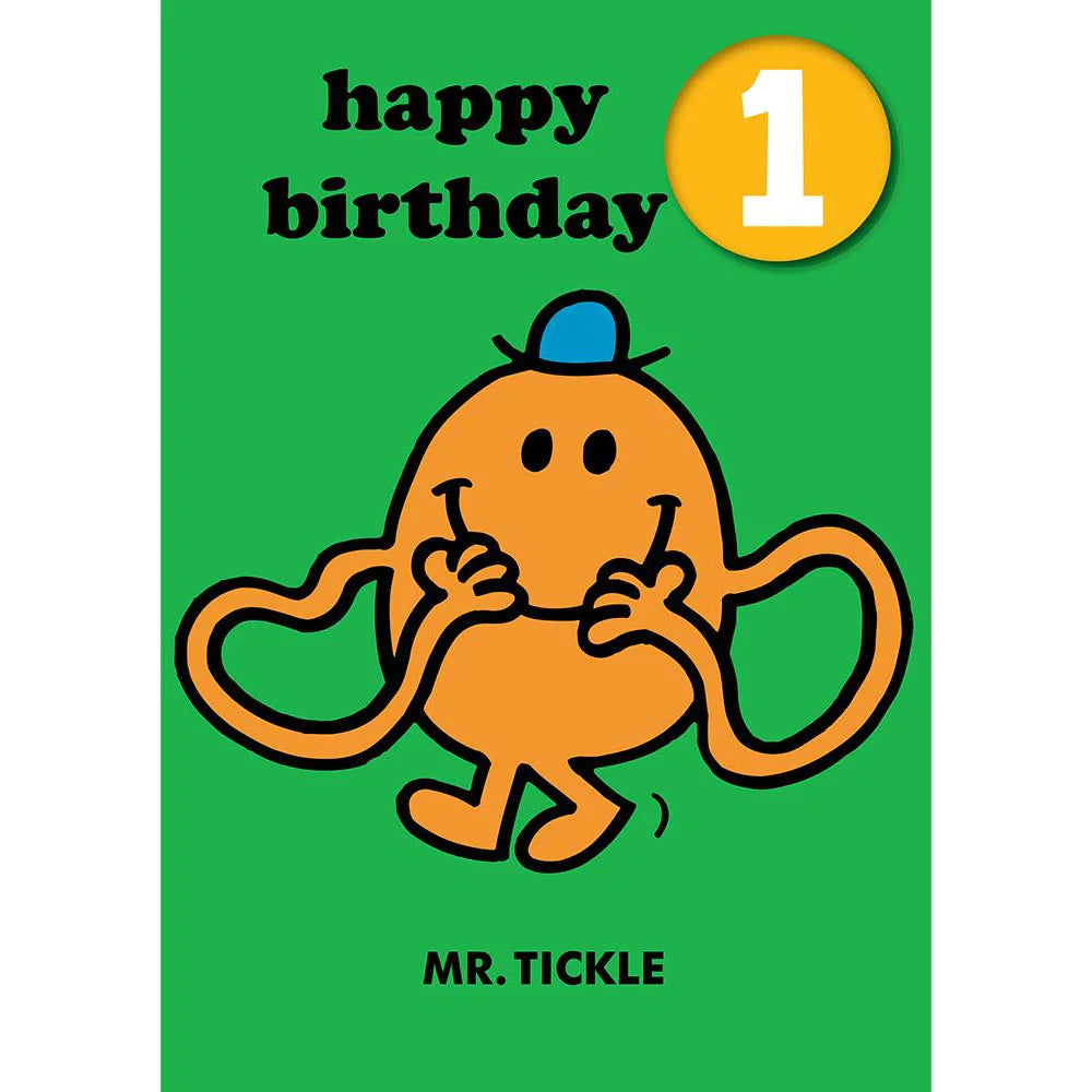 • Front reads:  Happy Birthday - Mr Tickle (No.1 Badge)