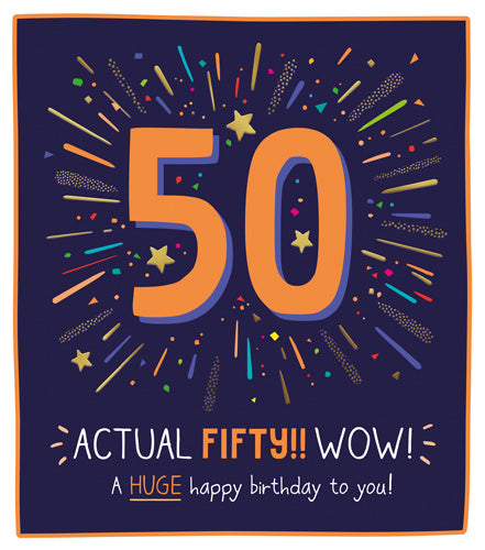 - Front reads: 50 - Actual 50!! Wow! A Huge Happy Birthday To You!