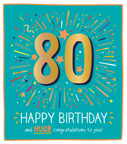 - Front reads: 80 - Happy Birthday And Huge Congratulations To You!