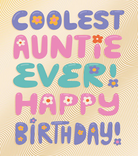 - Front reads: Coolest Auntie Ever! Happy Birthday!