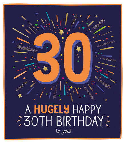 - Front reads: 30 - A Hugely Happy 30th Birthday To You!