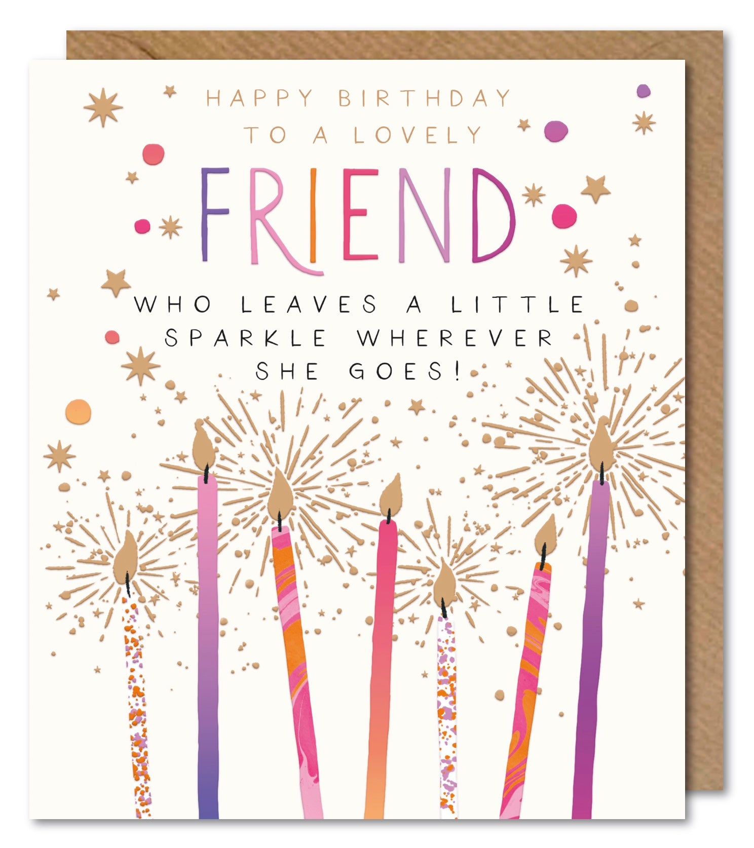 - Front reads: Happy Birthday To A Lovely Friend - Who Leaves A Little Sparkle Wherever She Goes!
