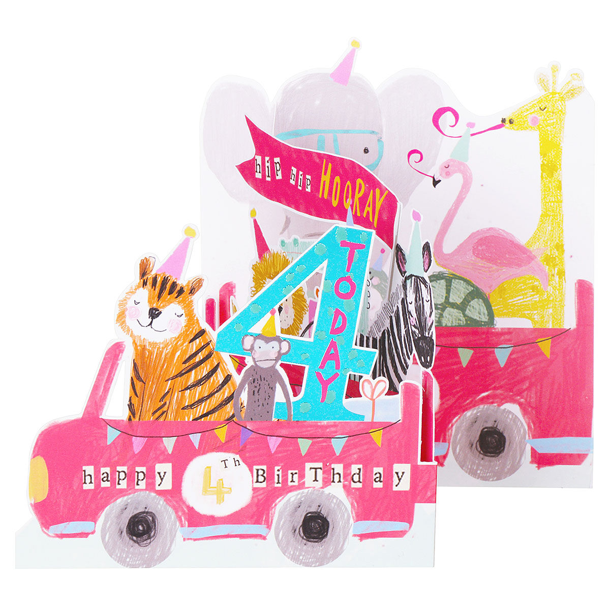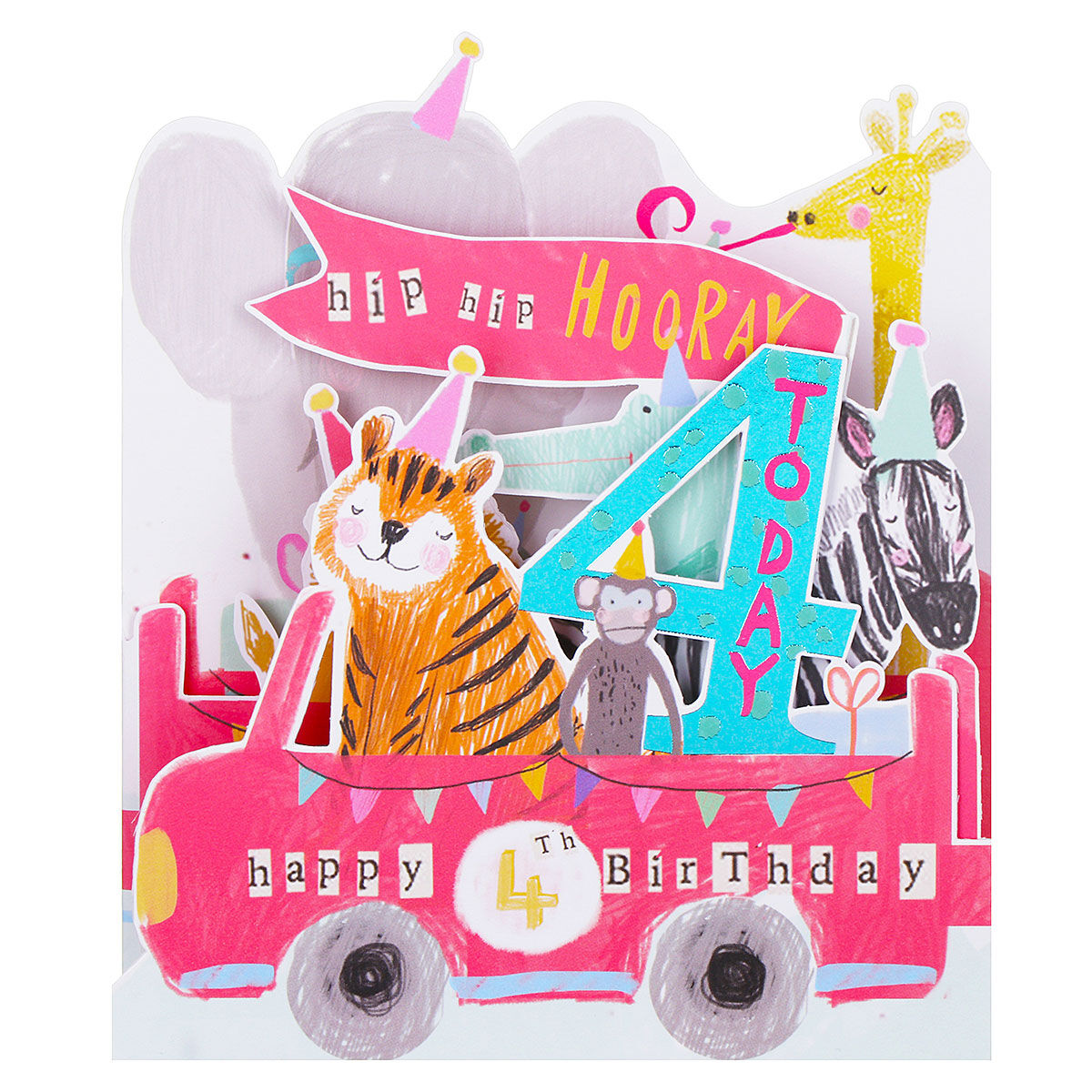 - Front reads: Hip Hip Hooray 4 Today. Happy 4th Birthday